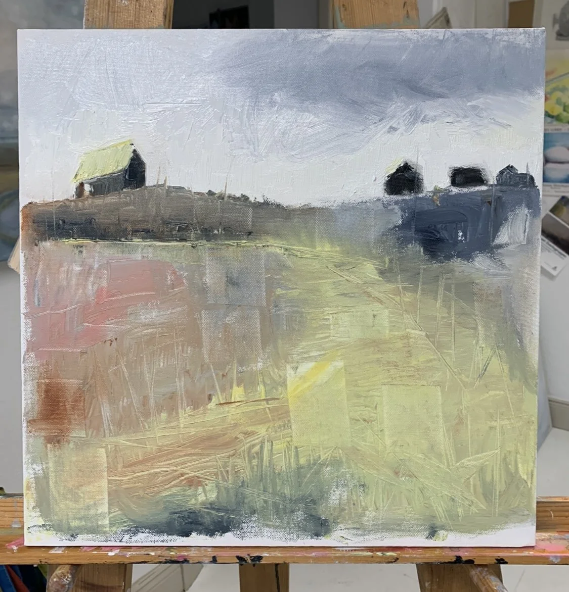 “ EN TAVLA SOM FÖR MIG REPRESENTERAR BÅDE NOSTALGI OCH HOPP, OCH DESS VARMA, LEVANDE FÄRGER GÖR DEN TILL EN FAVORIT I MIN SAMLING. MÅLNINGEN AVBILDAR EN FRIDFULL BONDGÅRDSSCEN VID SKYMNING, DÄR NATURENS STILLHET MÖTER MÄNSKLIG NÄRVARO PÅ ETT HARMONISKT SÄTT. “